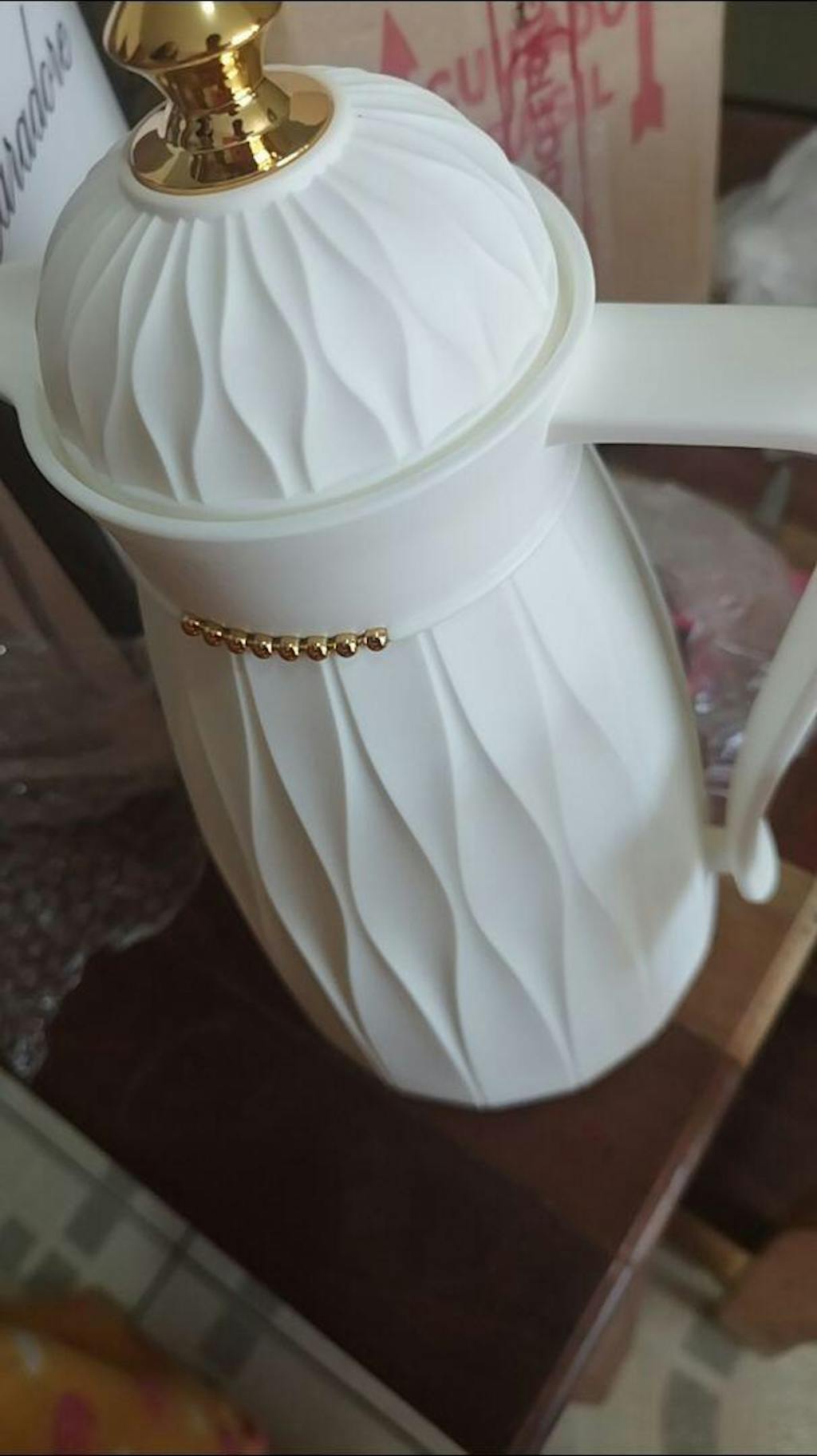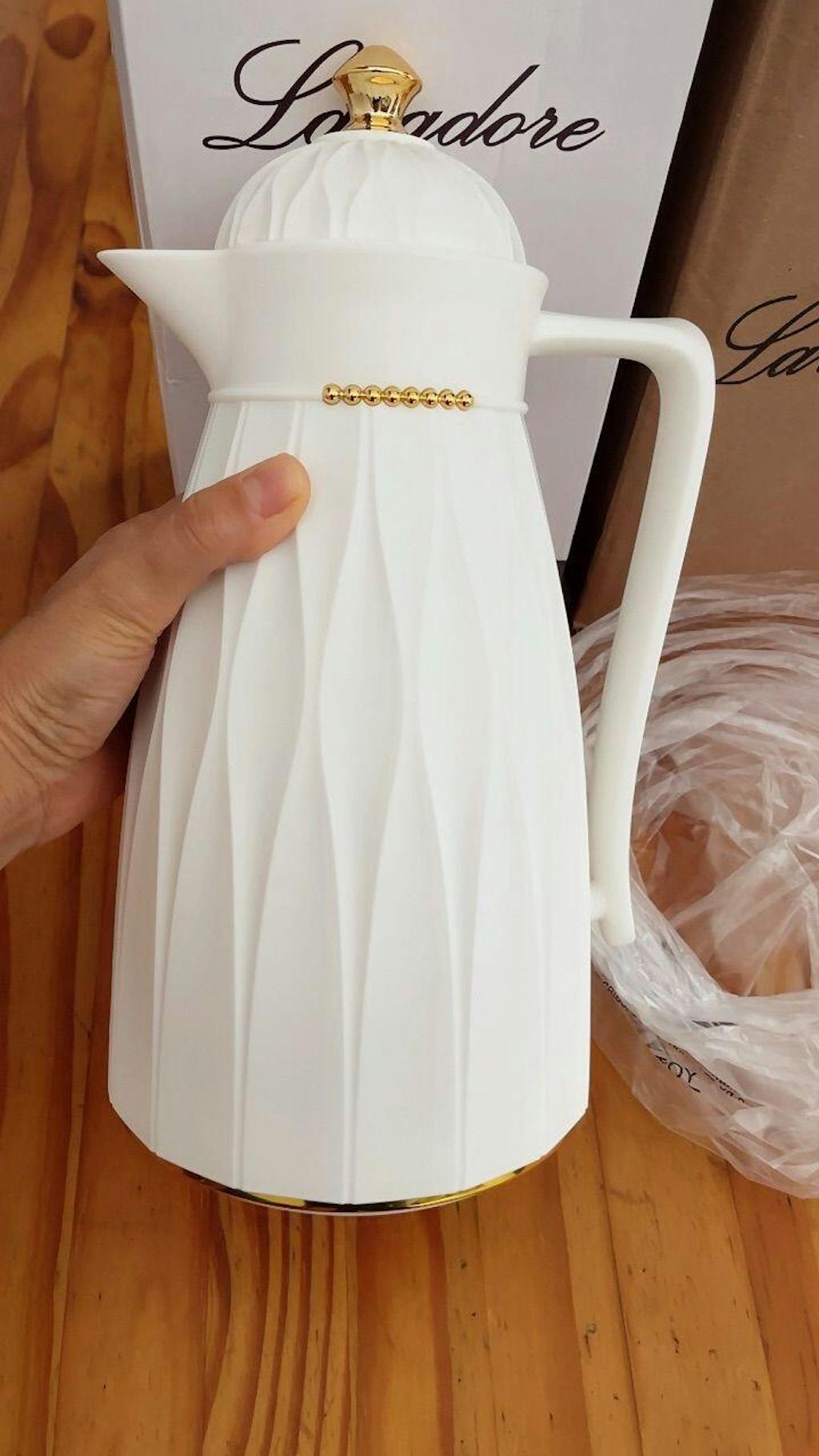 Sirva café, chá ou outras bebidas com elegância e praticidade. A Garrafa Térmica Paris une design sofisticado, detalhes dourados e ampola de vidro para manter a temperatura e o sabor perfeito até o último gole. Ideal para receber amigos, familiares ou impressionar em eventos e reuniões.