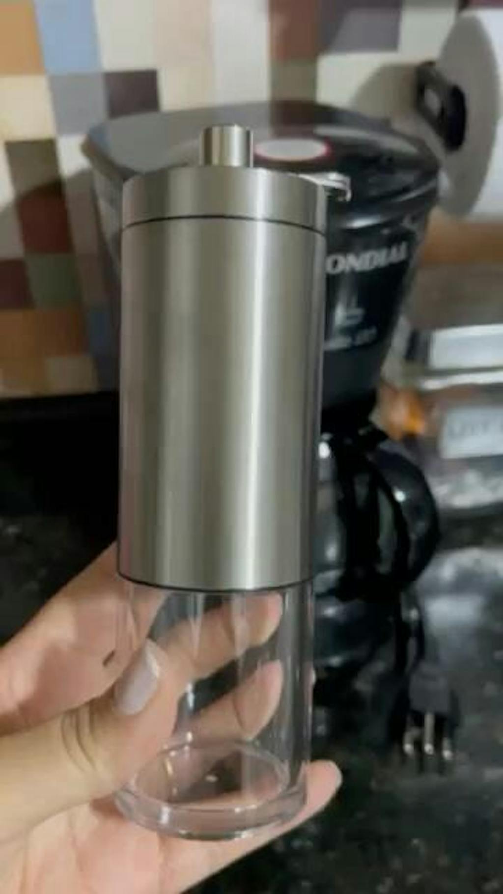 Prepare o café do seu jeito com o Moedor Manual Santiago Prata . Compacto, resistente e elegante, é ideal para quem busca sabor fresco e metálico personalizado em cada preparo. Basta adicionar os grãos, ajustar a lâmina e girar a manivela para ter o café moído na hora.